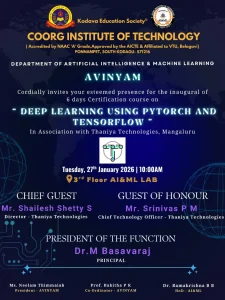 Coorg Institute of Technology offers a new course “Artificial Intelligence and Data Science” to be in line with the emerging trends in the field of technology
